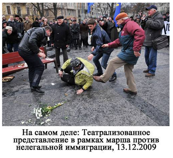 При всей бредовости тут есть одно важное замечание - "почему культурное прозападное общество позволило нацистам избить ветеранов ВОВ?"